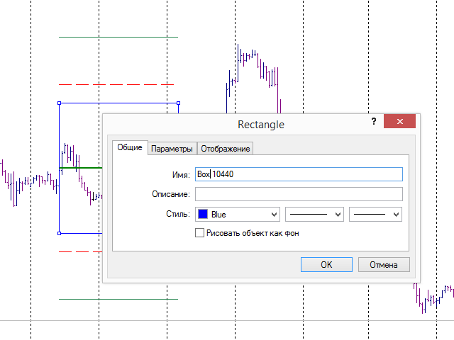 Levels are specified in % of the height of the rectangle.A convenient graphical element for analyzing charts by growth-correction levels.Enjoy your work!