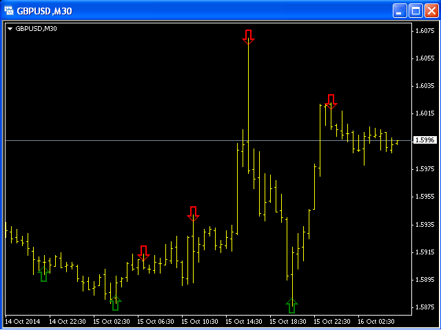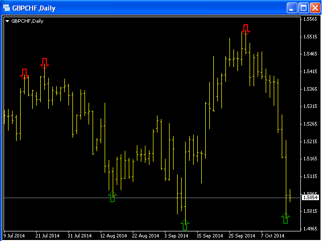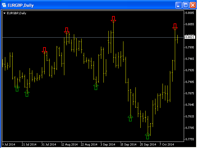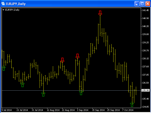 - Red arrows indicate the beginning of the Down trend and it will be a good time to open a Short position.
