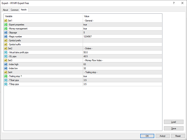 Virtual Money Flow free - Lightweight free trading robot based on Money Flow index. Orders set with ISL and take profit is virtual. Equipped with trailing stop and limited money management.