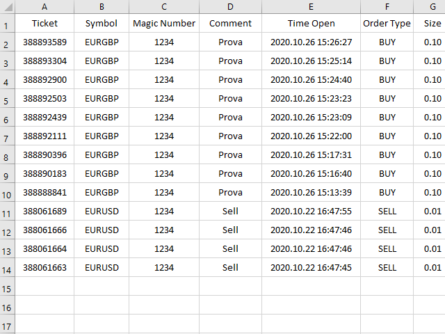 If you like this product, take a look to the FULL INTERFACE! MT4 To Excel Interface