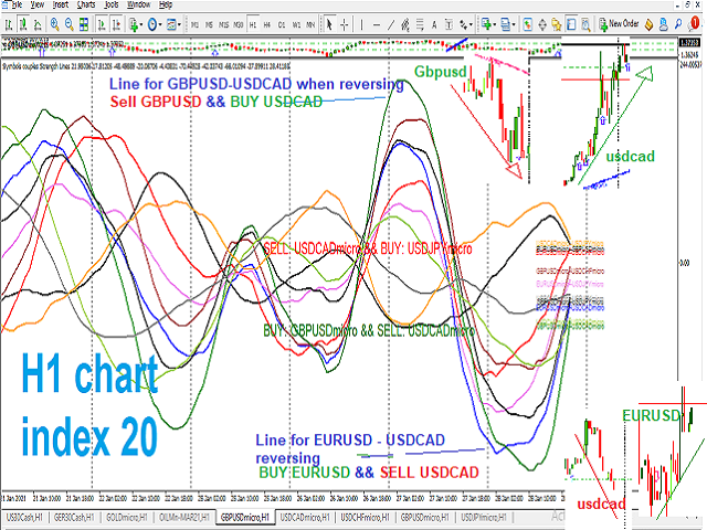 like the strength relative line for EURUSD and USDCAD when it is the weaker lowest line and a reversal occurs