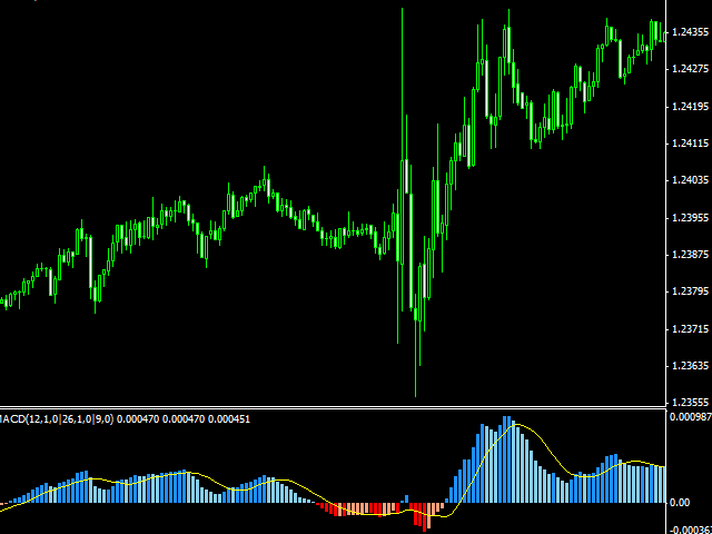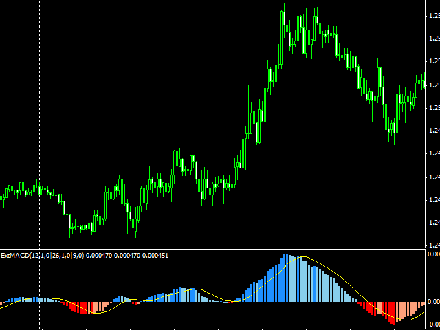 著名的移动平均收敛/发散 (MACD) 指标的扩展版本,以 4 种颜色分布:增长、高于和低于 0。