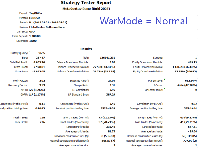 EA TugOfWar will open both buy and sell positions at different times according to the triggered signal, the most positions and in accordance with the market direction that will win and profit.