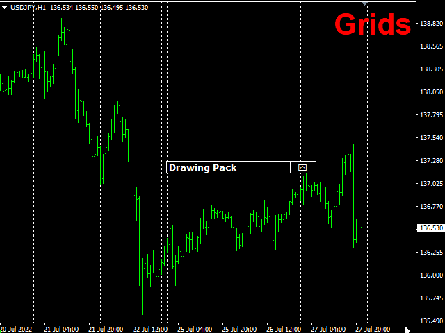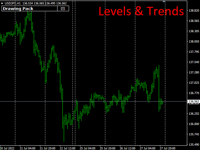 This indicator provides several drawing tools to assist in various methods of chart analysis.