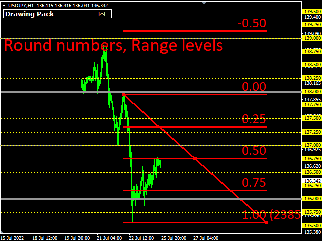 4 Cycles similar to built-in cycle line but with option to cycle full screen 5 Levels horizontal levels, height defined by handle line, optional full width 6 Round numbers user input for round number (in points), multiple levels supported