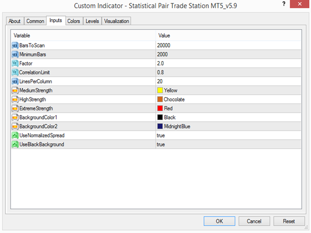 - Bars to scan for calculation: To calculate pair trading statistics, you need to specify how much historical data you are going to use in the calculation. Check the currency pairs with smallest and largest historical data to get some idea of how much historical data is available in your MetaTrader terminal. Then choose good amount of data to calculate pair trading statistics.