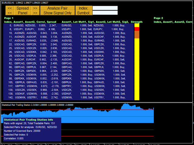 - Once you have set the amount of bars to be used in the calculation and the correlation level, it is time to ask your Pair Trading Station to go through intensive calculation to generate trading signals. Just click “Analyze Pair” button to proceed the calculation. The calculation may take from 30 seconds to several minutes. The calculation time mainly depend on two factor including amount of bars to be used and the number of currency pairs in your market watch. If you have already calculated Pair trading statistics quite lately, then you don’t have to go through the intensive calculation again because Pair Trading Station keeps the latest Pair Trading Statistics. To load the latest Pair Trading Statistics, you just need to press “Ctrl”+ J key on your keyboard.