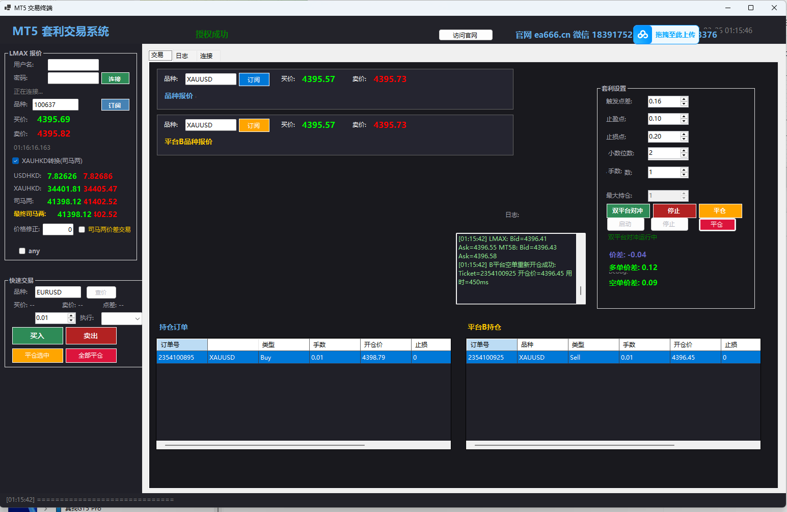 > 智能监控 MT5 与 LMAX 平台价差,全自动执行的黄金套利交易工具